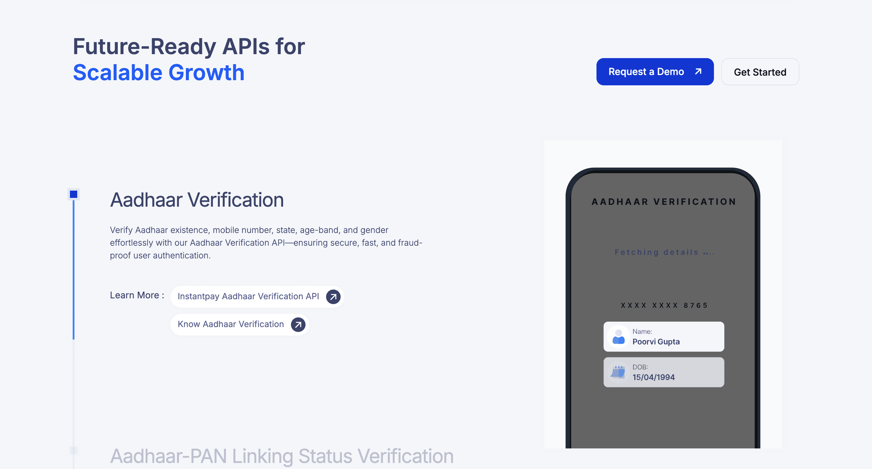 Instantpay’s verification suite offers seamless KYC, Aadhaar, PAN, and document authentication APIs to help businesses onboard users securely and instantly.